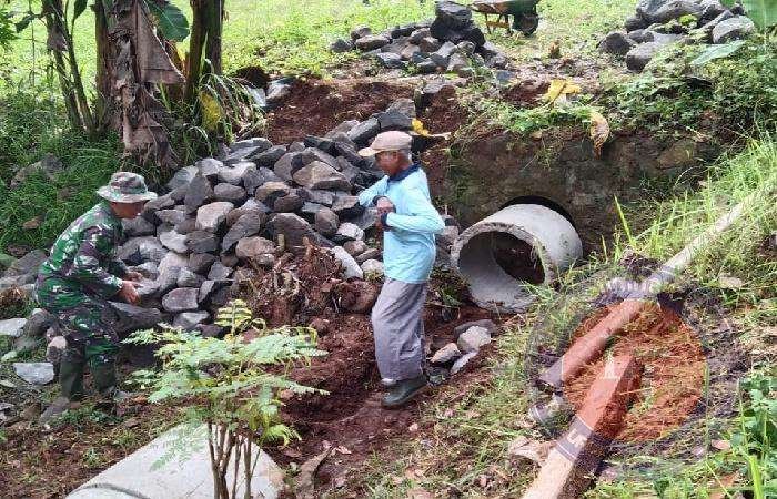 Peduli Warga, Babinsa Bantu pembuatan Drainase