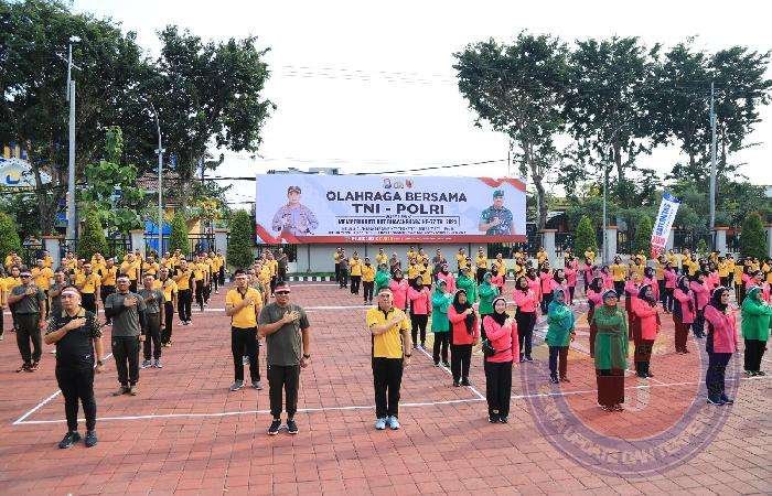 Kapolres Gresik AKBP Adhitya Panji Anom menyampaikan kegiatan olahraga bersama dalam rangka Hut Bhayangkara ke 77 tahun 2023 dengan tema melalui olahraga bersama TNI Polri yang bertujuan untuk memupuk sinergitas antara kedua intitusi dalam mendukung tugas pokok masing-masing.