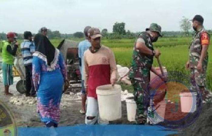 Babinsa Bantu Pengecoran jalan Desa, Tumbuhkan Semangat Kebersamaan Dan Gotong Royong