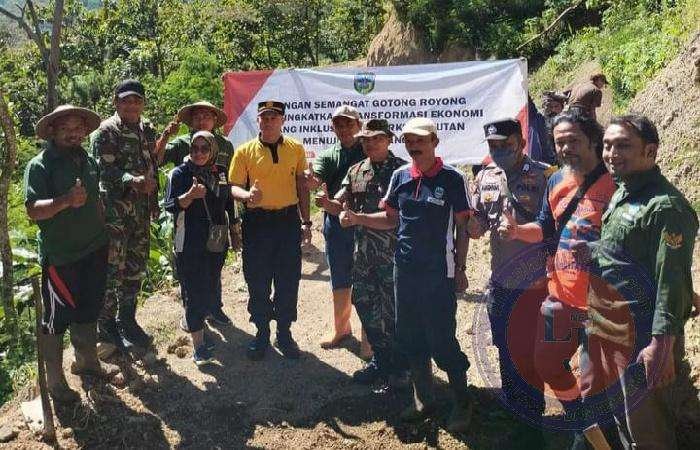 PACITAN lintasjatimnews.com – Demi mendukung kelancaran masyarakat dalam beraktivitas sehari-hari, Koramil 0801/05 Nawangan bersama Forkopimcam dan masyarakat secara gotong royong melaksanakan pelebaran akses jalan yang berlokasi di Dusun Tempel, Desa Pakis Baru, Kec. Nawangan, Kab. Pacitan, Sabtu (20/05/2023).