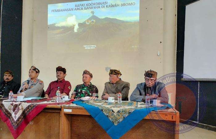 PROBOLINGGO, lintasjatimnews.com – Komandan Kodim 0820/Probolinggo Letkol Arm Heri Budiasto menaruh perhatian khusus terkait hilangnya patung Ganesha di bibir kawah Gunung Bromo, perhatian orang nomor satu di jajaran Kodim Probolinggo diperjelas saat perwira abituren tahun 2002 hadir secara langsung dalam rapat koordinasi pembahasan raibnya patung Ganesha sekaligus pengamanan upacara Yadnya Kasada tahun 2023.