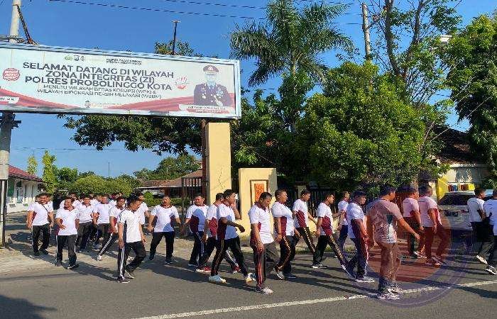 PROBOLINGGO lintasjatimnews.com – Kapolres Probolinggo Kota AKBP Wadi Sa’bani memimpin langsung kegiatan olahraga bersama di internal Mapolres setempat, Dalam kegiatan yang diikuti oleh seluruh pejabat utama (PJU) dan anggota Polres Probolinggo Kota tersebut tujuan untuk meningkatkan kondisi fisik dan mempererat hubungan antar anggota.