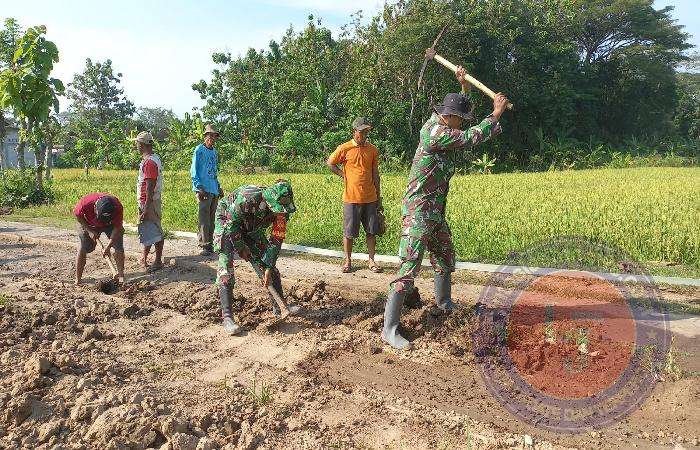 BOYOLALI lintasjatimnews.com – Dalam proses pengerjaan program TNI Manunggal Membangun Desa (TMMD) Sengkuyung Tahap II TA. 2023, di Desa Blagung Kecamatan Simo Kabupaten Boyolali, para anggota TNI rupanya tidak hanya sendiri dalam proses pengerjaannya, mereka dibantu oleh warga Masyarakat yang berkeinginan mempunyai jalan yang lebih baik dan bagus. Senin (22/05/2023).