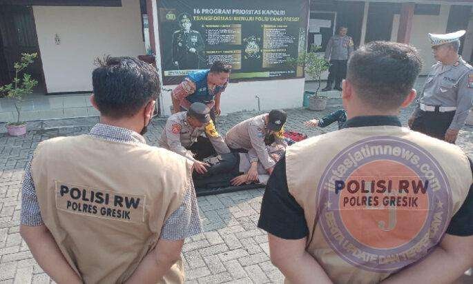 GRESIK lintasjatimnews.com – Polsek Driyorejo Polres Gresik menggandeng puskesmas Driyorejo untuk berikan pelatihan kemampuan PPGD (Pelatihan Penanganan Gawat Darurat). Hal ini sebagai pembekalan kemampuan polisi RW.