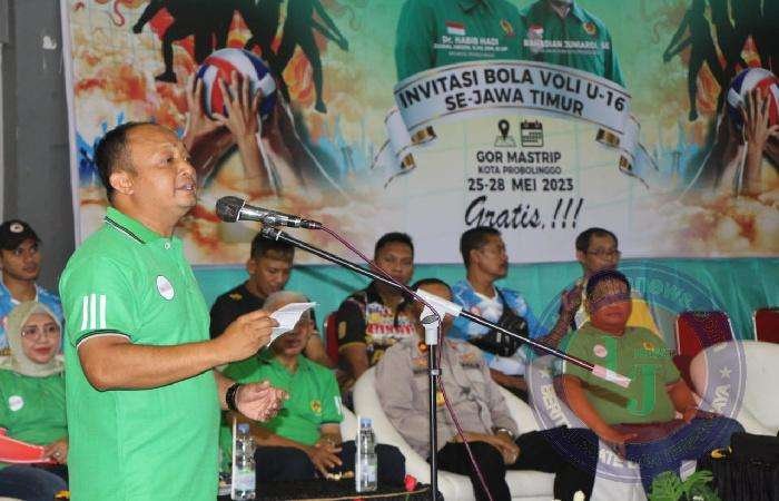 PROBOLINGGO lintasjatimnews.com – Komandan Kodim (Dandim) 0820/Probolinggo Letkol Arm Heri Budiasto menghadiri pembukaan invitasi bola voli usia 16 sejawa timur yang di gelar di Gor Mastrib Kota Probolinggo, Jumat (26/5).