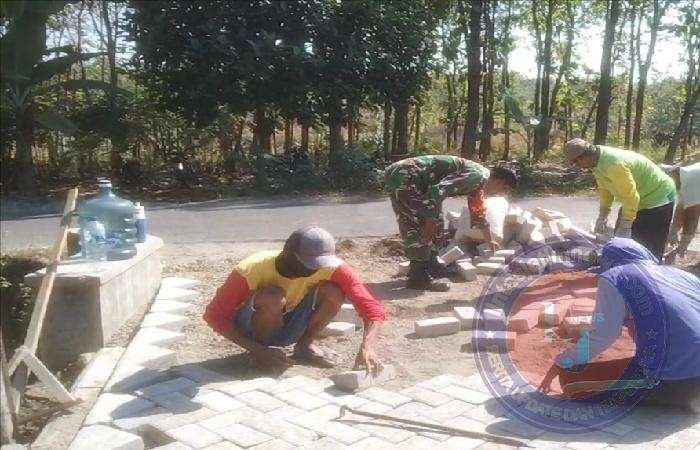 NGAWI lintasjatimnews.com – Kebersamaan dan kedekatan Babinsa bersama masyarakat di wilayah binaannya, ditunjukan oleh Sertu Saiful Babinsa Koramil 15/Karanganyar Kodim Ngawi bersama masyarakat binaan Desa Mengger, dalam melaksanakan kerja bakti pemasangan paving jalan Desa Mengger Kecamatan Karanganyar, Senin (29/5/2023).