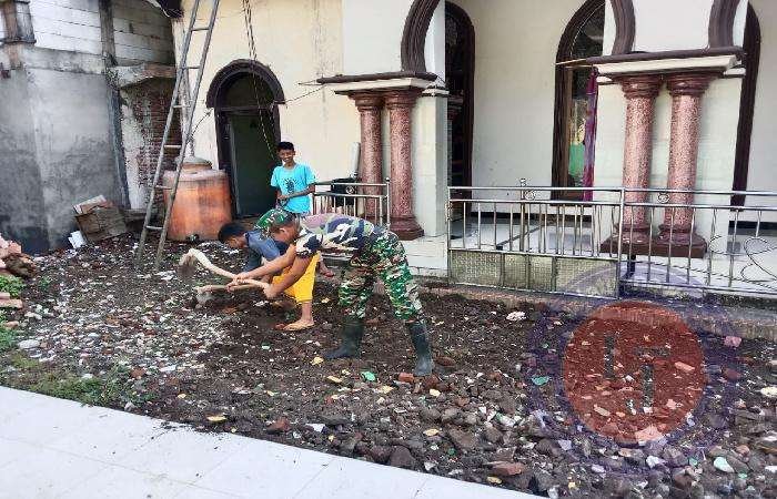 Koramil Tiris Baksos Bersihkan Tempat Ibadah
