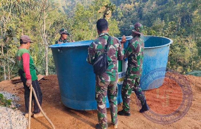 PACITAN lintasjatimnews.com – Sebagai upaya untuk mempermudah pengerjaan sasaran fisik pada Pra TMMD ke-117 tahun 2023, personil Kodim 0801/Pacitan juga menyiapkan dua tandon air, di lokasi pelaksanaan pengerasan jalan yang ada di Dusun Gedangan, Desa Ketroharjo, Kec. Tulakan, Kab. Pacitan, Jumat (02/06/2023).