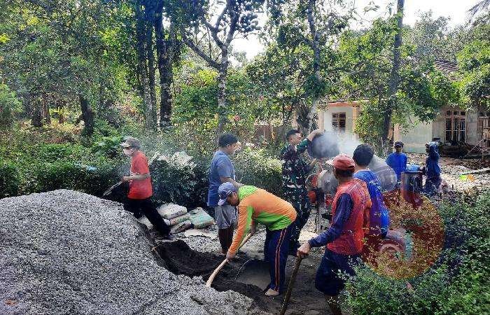 WONOGIRI lintasjatimnews.com – Guna mewujudkan fasilitas umum yang layak di pedesaan dan menunjang ekonomi warga, personil dari Koramil 14/Jatisrono Kodim 0728/Wonogiri bersama warga melanjutkan karya bakti perbaikan lorong jalan di desa Rejosari Kecamatan Jatisrono Kabupaten Wonogiri. Sabtu (3/06/2023).