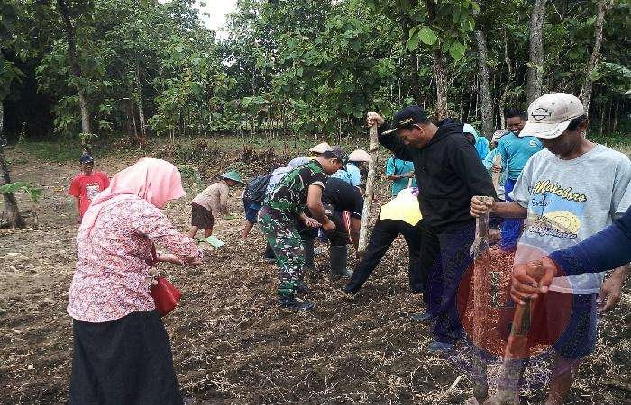 Dalam kesempatan ini Serda Yatno bersam warga membantu pembersihan dan penyiapan lahan kebun yang nantinya akan ditanami Jagung dan Kacang.