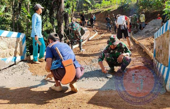 PACITAN lintasjatimnews.com – Setelah selama dua pekan merampungkan sasaran fisik berupa pembangunan talud sepanjang 40 meter dan tinggi 6 meter, kini anggota Kodim 0801/Pacitan yang tergabung dalam Pra TMMD ke-117 bersama masyarakat memulai pengerjaan pengecoran jalan.