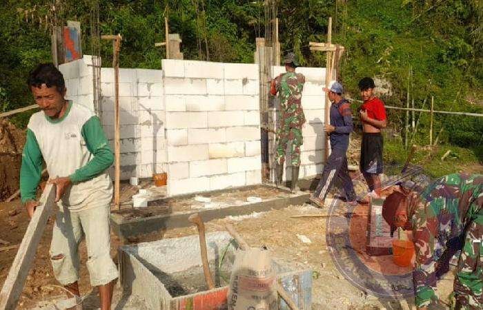 “Untuk sasaran fisik berupa pembuatan MCK saat ini masih dalam tahap pemasangan bata ringan untuk dinding, yang dilakukan secara gotong royong”, kata anggota Kodim 0801/Pacitan saat berada di lokasi bersama warga.