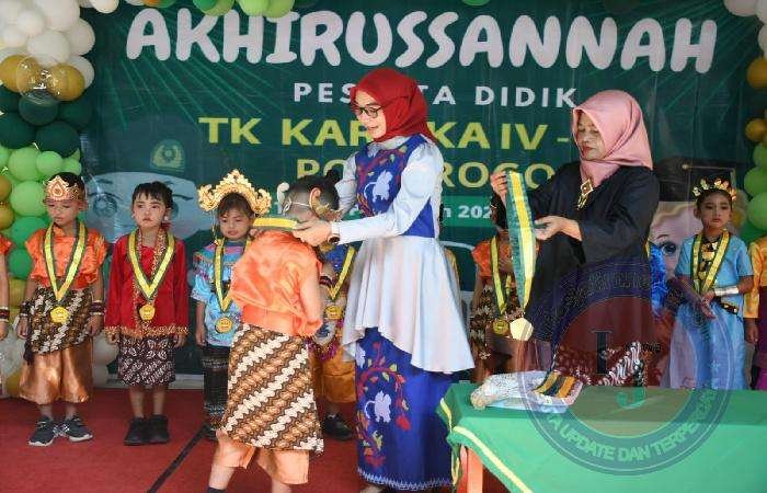PONOROGO lintasjatimnews.com – Akhirussannah atau perayaan akhir tahun siswa siswi yang telah selesai menjalani pendidikan atau masa studi di TK Kartika IV-20 Ponorogo Tahun Pelajaran 2022-2023 hari ini digelar di Gedung TK Kartika IV-20 Ponorogo yang berlokasi di Komplek Kodim 0802/Ponorogo, Sabtu (17/06/2023).