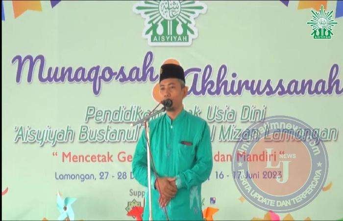 LAMONGAN lintasjatimnews.com – Munaqosah dan Akhirussanah Pendidikan Anak Usia Dini (PAUD) ‘Aisyiyah Bustanul Athfal (ABA) III Al Mizan Lamongan digelar di halaman Al Mizan putra, Sabtu (17/6/2023)