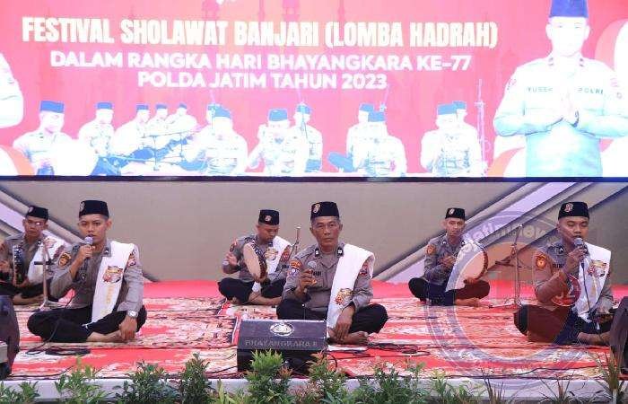 “Lomba ini dalam rangka menyambut Hari Bhayangkara ke 77 tahun 2023, yang diikuti oleh 78 grup yang terdiri dari 39 grup hadrah dari anggota Polres jajaran dan 39 grup dari umum yang telah ditunjuk oleh masing masing Polres,” kata Kapolda Jatim, Senin (19/6/2023) pagi.