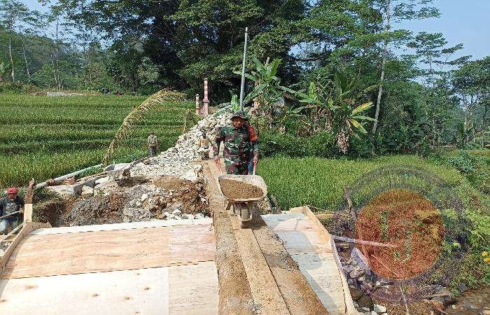 Babinsa mengatakan, jembatan yang ada pada tahun 2020 rusak parah terbawa banjir, untuk sementara dibuat jembatan darurat dari kayu agar warga tetap bisa melewati dan saat ini, kita bergotong-royong membangun jembatan agar transportasi kembali normal.