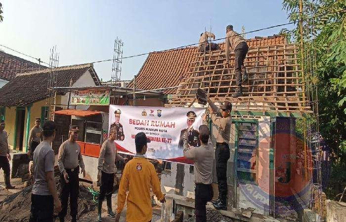 Polisi Peduli, Polres Madiun Kota Bantu Bedah Rumah Warga di Hari Bhayangkara ke 77