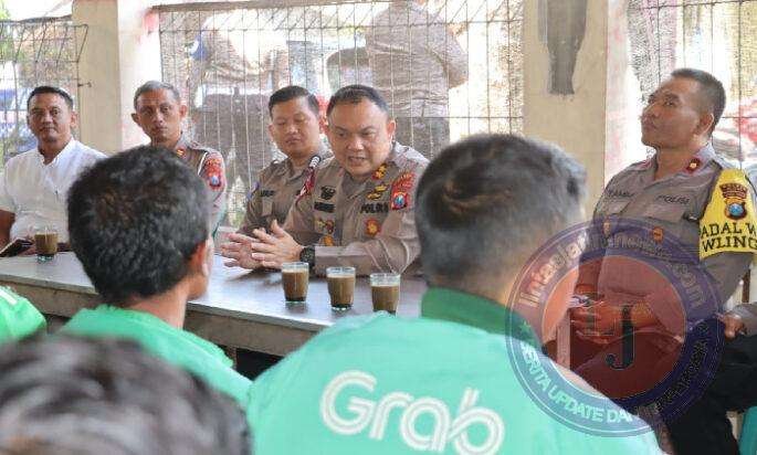 Kali ini Kapolres Blitar sengaja mengumpulkan komunitas ojek online ( Ojol ) untuk saling berbagi informasi dan mendengarkan aspirasi para pengemudi ojek during.