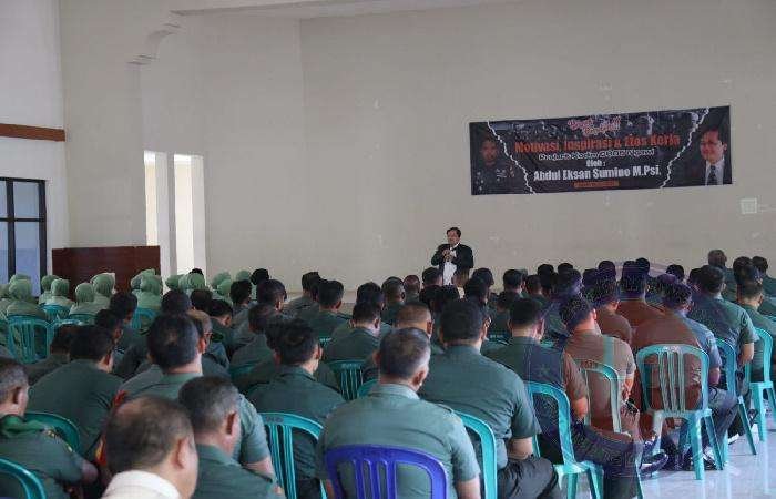 NGAWI lintasjatimnews.com – Untuk menambah pengetahuan dan motivasi hidup serta semangat kerja yang disiplin, Kodim 0805/Ngawi gelar kegiatan ceramah motivasi, inspirasi dan etos kerja oleh Sdr Abdul Eksan Sumino,M.Psi yang dihadiri seluruh prajurit dan PNS kodim 0805/Ngawi bertempat di gedung Eka Kapti Jl. Jaksa Agung Suprapto no.04 Kelurahan Ketanggi, Kecamatan Ngawi, Kabupaten Ngawi. Kamis ( 22/06/2023).