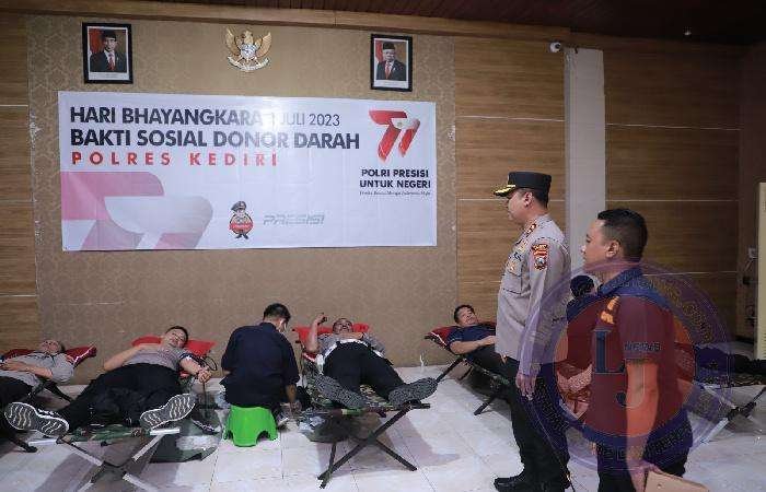 “Pagi ini kami telah melaksanakan giat bakti kesehatan Polres Kediri berupa donor darah dalam rangka peringatan hari Bhayangkara ke-77 tahun 2023 di Aula Jana Nuraga Polres Kediri,” ujar Kapolres Kediri AKBP Agung Setyo Nugroho, S.I.K. melalui Kasidokkes Polres Kediri Aipda Arief Habib, A.Md. Kep., S.H.