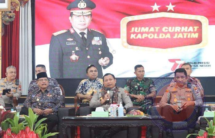 BANGKALAN lintasjatimnews.com – Kapolda Jawa Timur Irjen Pol Dr Toni Harmanto,M.H bersama Ketua Bhayangkari Ny.Yesika Toni Harmanto melaksanakan Jumat Curhat dan Berkah yang dilaksanakan di Pendopo Agung, Kabupaten Bangkalan, Jatim, Jumat (23/6/2023).