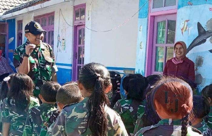 Pelda N Dodik H, Anggota Koramil 0820/08 Sukapura menyampaikan bahwa kegiatan pemberian materi wawasan kebangsaan kepada murid taman kanak-kanak bertujuan agar sejak usia dini sudah memiliki fondasi yang kuat sebagai calon generasi penerus bangsa.
