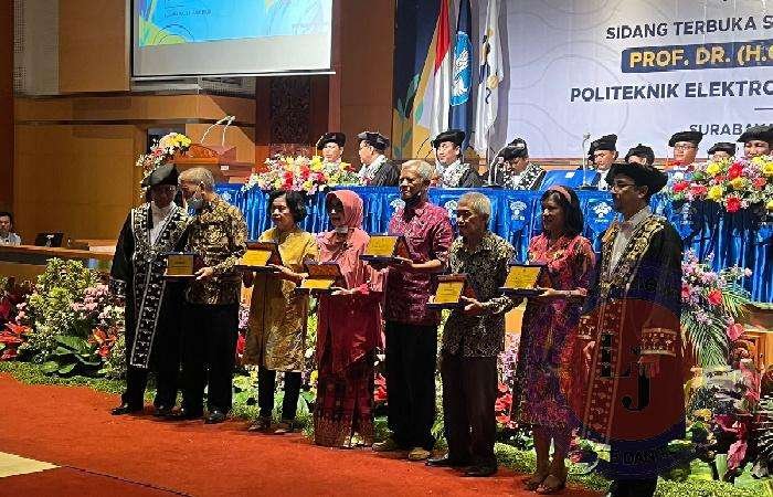 Tak hanya itu dalam kesempatan yang sama, disampaikan pula penghargaan kepada beberapa tokoh yang berjasa mendirikan PENS, diantaranya ke beberapa dosen pendahulu, yaitu Ir.R. Henggar Budiman, MT, Ir. Sulistyo Mahargyo B, Dr.Ir. Era Purwanto, M.Eng, Ir. Yoedy Moegiharto, MT, Ir. Iskandar Zulkarnain, Ir. Sutikno, Ir. Djoko Suprajitno Rahardjo, MT, Ir. Ratna Adil MT, dan Dr.Ir. Achmad Mauludyanto, MT.