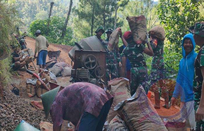 PACITAN lintasjatimnews.com – Demi menunjang kesuksesan program Pra TMMD ke-117 yang berlangsung di Desa Ketroharjo, Kec. Tulakan, Kab. Pacitan, anggota Kodim 0801/Pacitan bersama masyarakat terus melanjutkan pembangunan di beberapa titik sasaran fisik, Minggu (25/06/2023).