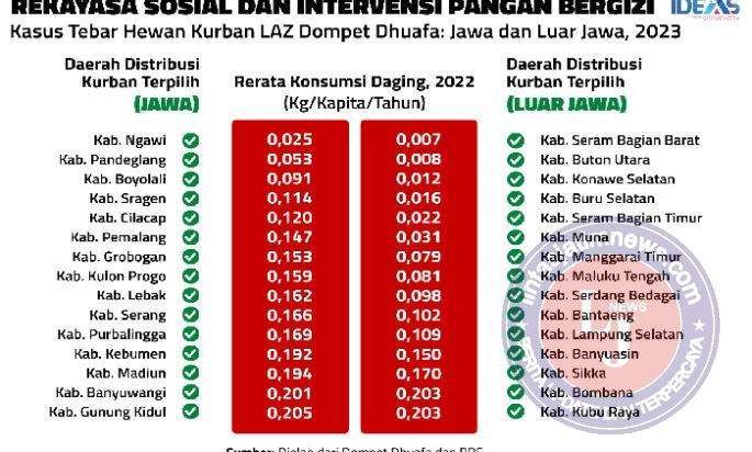 Lembaga Riset Institute For Demographic and Poverty Studies (IDEAS) mengidentifikasi sejumlah daerah prioritas intervensi gizi protein hewani melalui kurban, yaitu daerah dengan konsumsi daging yang sangat rendah, mendekati nol, dan dengan jumlah mustahik yang besar.