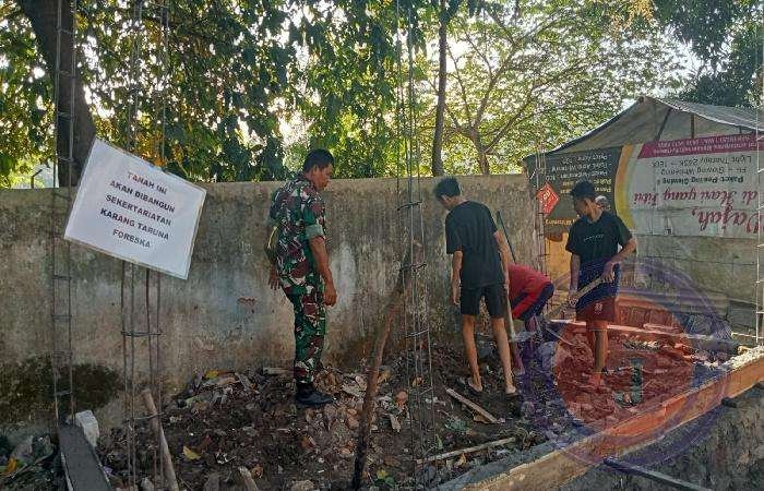 Gandeng Karangtaruna, Babinsa Kelurahan Karangasem Gotong Royong Bangun Pos Ronda