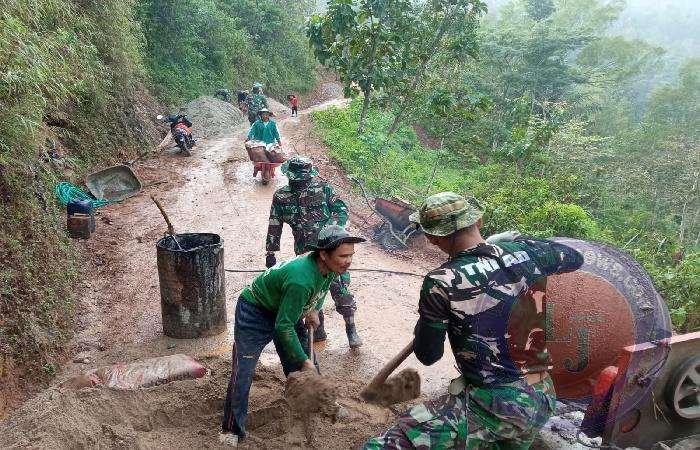 Dengan semangat kebersamaan mereka saling bahu membahu mengerjakan sasaran fisik berupa pengerasan jalan.Meskipun cuaca gerimis bukan suatu alasan bagi para personel Kodim 0801/Pacitan dan warga setempat untuk merampungkan pekerjaan sesuai yang ditargetkan.