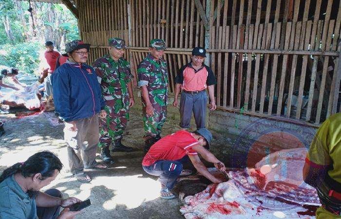 Seperti yang dilakukan Pelda Dhimas bersama Sertu Sutrisno Babinsa Koramil 23/Karangtengah, yang membantu warga binaannya ketika melaksanakan penyembelihan hewan Kurban di Masjid Al Huda dusun timbangan desa Karangtengah Kecamatan Karangtengah.