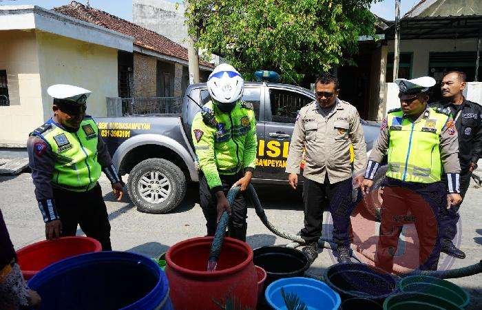 Kapolres Gresik AKBP Adhitya Panji Anom melalui Kasat Lantas AKP Agung Fitransyah mengatakan, sebanyak empat mobil tangki air didistribusikan bagi warga.