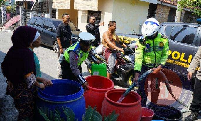Kami menerima laporan bahwa warga kesulitan peroleh air bersih. Karena itu kita salurkan air bersih sebanyak 20.000 liter untuk di wilayah ini, ungkap Kasat Lantas