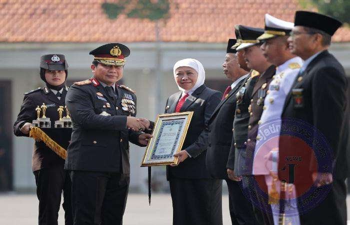 Sementara itu Dirreskrimum dan Dirreskrimsus Polda Jatim menerima penghargaan Jer Basuki Mawa Beya dari Gubernur Jawa Timur Khofifah Indar Parawansa.