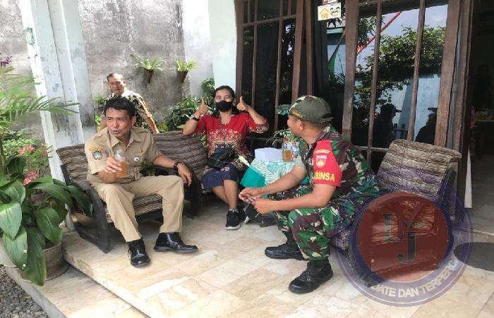 Dengan ditemani sebotol teh manis, Serka Jhony berbincang-bincang dan bersilaturahmi dengan perangkat desa dan warga masyarakat di wilayah Kelurahan Tegalharjo, Kecamatan Jebres.