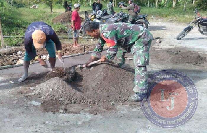 Dalam kegiatan tersebut nampak semangat kebersamaan dan kegotong – royongan antara Babinsa dengan warga saat melakukan pengecoran jalan, kegiatan tersebut merupakan salah satu bukti nyata peran Babinsa di tengah masyarakat, serta wujud dukungannya dalam pembangunan desa khususnya peningkatan infrastruktur di wilayah pedesaan.