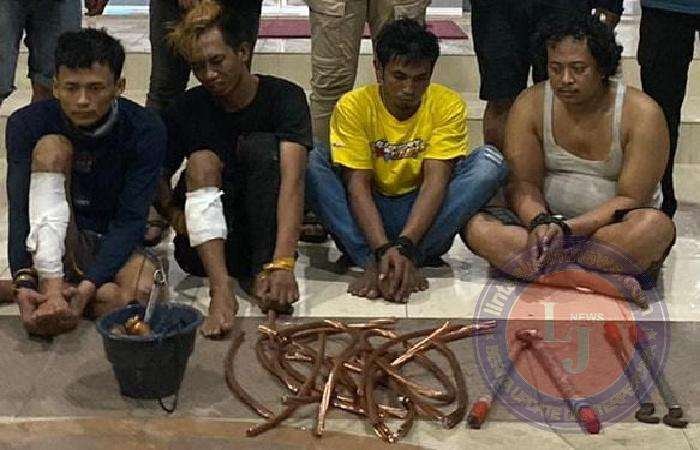 GRESIK lintasjatimnews.com – Penyebab padamnya aliran listrik di wilayah Prambangan dan Mayjend Sungkono Gresik terkuak. Kabel tembaga milik PLN dicuri, para komplotan maling kabel berhasil diringkus Satreskrim Polres Gresik.
