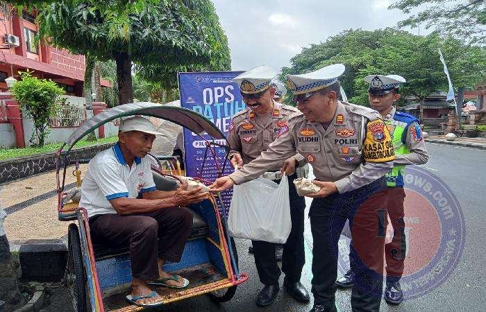Bukan itu saja, sembari berpatroli memantau Kamseltibcarlantas wilayah, pihaknya juga membagikan nasi bungkus sarapan pagi kepada puluhan tukang becak yang sedang menunggu penumpang di sejumlah lokasi.