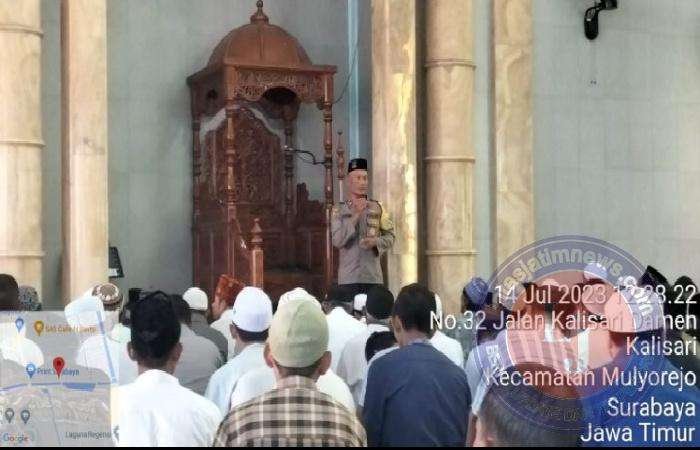 SURABAYA lintasjatimnews.com – Kapolsek Mulyorejo Kompol Sugeng Rianto,S.H.,M.M didampingi Bhabinkamtibmas Kel.Kalisari Aipda Agus Sujono,S.H melaksanakan Jumat Curhat dengan mengunjungi Masjid Nurul Mukminin RW III Kalisari Damen Kel.Kalisari Kec.Mulyorejo Surabaya Jumat (14/07/2023) pukul 12.00 Wib