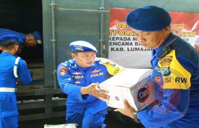SURABAYA lintasjatimnews.com – Tanggap dan peduli terhadap bencana alam, Polda Jawa Timur melalui Polisi RW dari Direktorat Polisi Perairan dan Udara (Ditpolairud) mengirimkan bantuan sosial berupa sembako dan obat – obatan ke pengungsian para korban banjir di Lumajang, Jawa Timur.