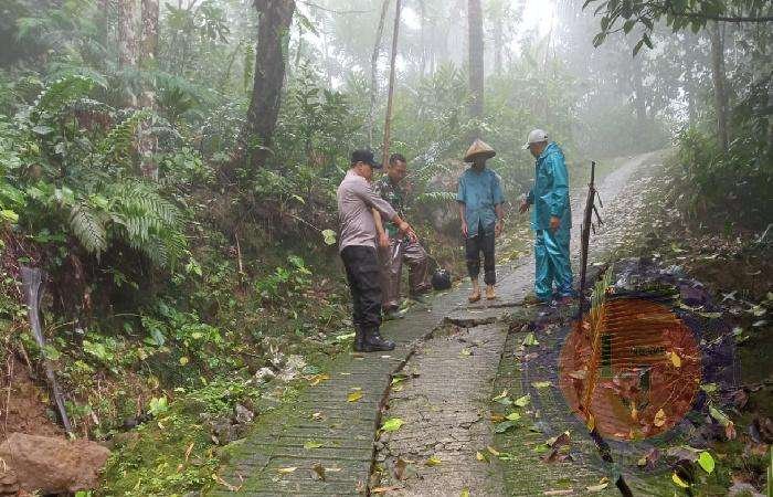 Respon Cepat Babinsa Koramil 0806/07 Watulimo Beraksi Mengatasi Tanah Retak