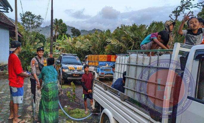 Kali ini Bhabinkamtibmas Polsek Pronojiwo juga telah mendistribusikan air bersih di Dusun Kebonsenen, Desa Sidomulyo, Kecamatan Pronojiwo, Kabupaten Lumajang, Senin (17/7/2023).