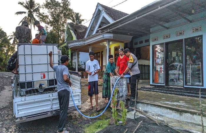 Selain salurkan air bersih, anggota kami juga memberikan pesan kamtibmas agar warga yang rumahnya berada di bantaran sungai dan di pinggiran tebing agar selalu waspada apabila cuaca buruk segera menghindar ke tempat aman, ujar Wahono Puji