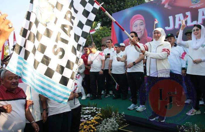 Peringati 1 Muharram 1445 H, Gubernur Khofifah Bagikan Puluhan Ribu Bendera dan Lepas Jalan Sehat