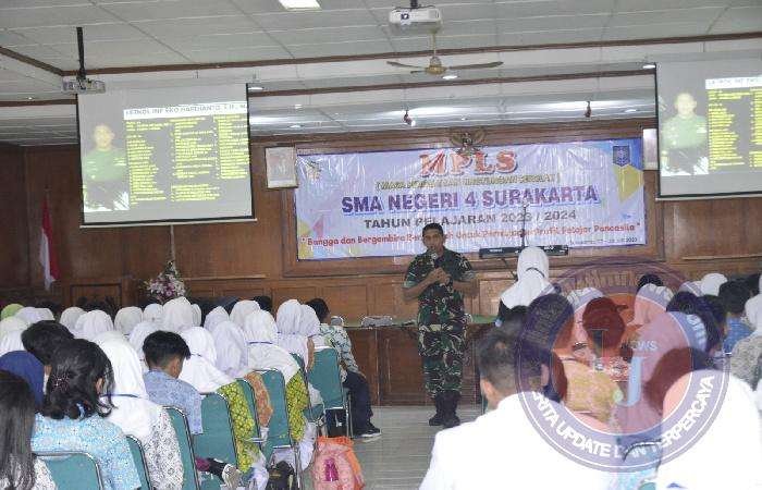 SURAKARTA lintasjatimnews.com – Dalam rangka Masa Pengenalan Lingkungan Sekolah (MPLS) Komandan Kodim 0735/Surakarta Letkol Inf Eko Hardianto S.H.,M.I.P. memberikan materi Wawasan Kebangsaan serta Bela Negara kepada Siswa Siswi baru di SMAN 4 Surakarta, Jl. Adi Sucipto Kelurahan Manahan, Kecamatan Banjarsari, Kamis (20/07/2023).