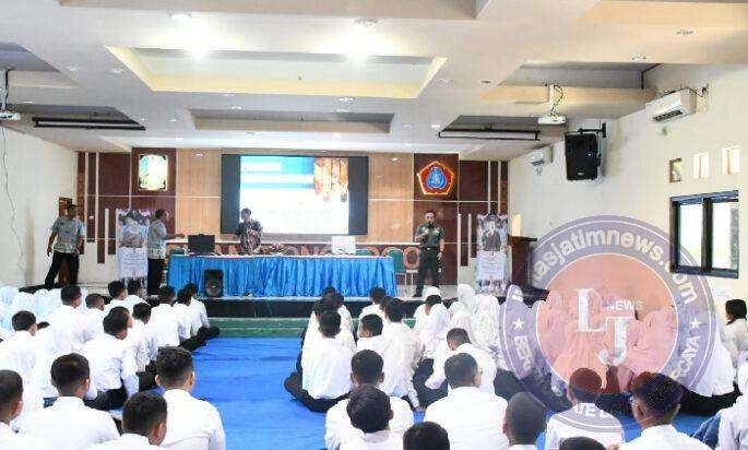 Dengan penuh perhatian, para siswa siswi SMA 1 Ponorogo yang jumlahnya sekitar 430 ditambah para guru menyimak semua materi yang diberikan oleh Komandan Kodim 0802/Ponorogo hingga selesai.