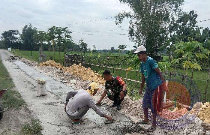 Semula jalan ini masih berupa tanah, jika musim hujan licin dan becek, maka atas kesepakatan seluruh warga dilaksanakan pengecoran secara gotong royong, agar mempermudah akses jalan bagi masyarakat dalam melaksanakan aktifitas sehari-hari dan dalam mengangkut hasil panen, tutup Serda Andik Junaidi.