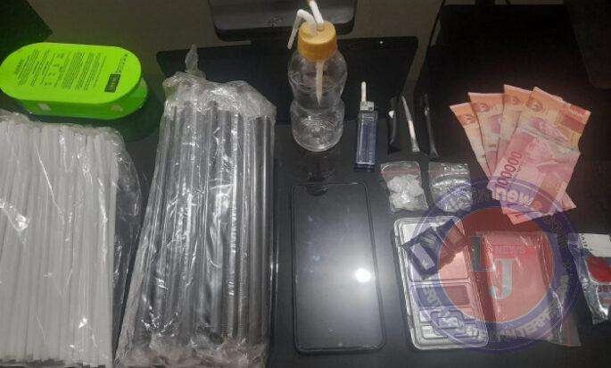 Seperangkat alat hisap sabu berupa bong dan sedotan juga turut disita dari tangan pelaku.