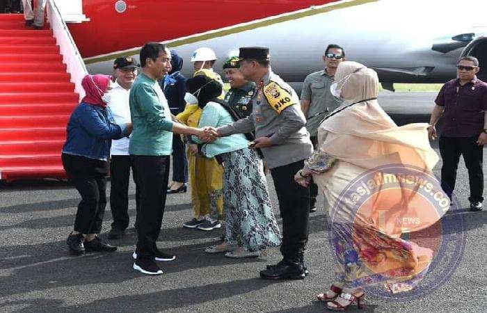 Setibanya di Bandar Udara Fatmawati Soekarno, Kota Bengkulu sekira pukul 15.15 WIB, Presiden Jokowi disambut oleh Gubernur Bengkulu Rohidin Mersyah beserta istri, Pangdam II/Sriwijaya Mayjen TNI Hilman Hadi beserta istri, dan Kapolda Bengkulu Irjen Pol. Armed Wijaya beserta istri.